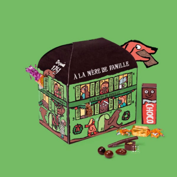 Découvrez le Calendrier de l'Avent 2025 A la Mère de Famille, une édition limitée d'exception qui célèbre dix années de tradition chocolatière française. Cette collaboration exclusive avec l'illustrateur de renommée internationale Jean Jullien transforme l'attente de Noël en véritable voyage artistique et gourmand. Chacune des 24 cases révèle des confiseries artisanales d'exception - pralinés, amandes et noisettes enrobées, mini calissons, caramels et nougats - tandis que les illustrations poétiques de Jean Jullien racontent une histoire enchantée qui se dévoile jour après jour. Bien plus qu'un simple calendrier, c'est une œuvre d'art à collectionner qui marie l'héritage confiseur français à la créativité contemporaine, offrant 24 moments de pur plaisir jusqu'à la surprise finale du 24 décembre.