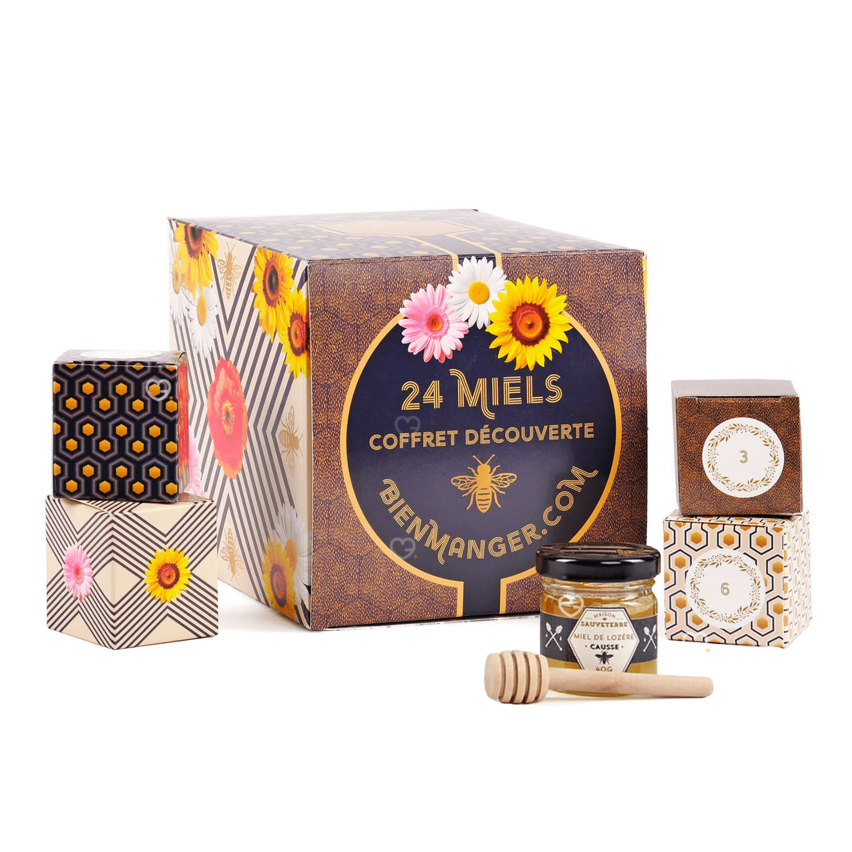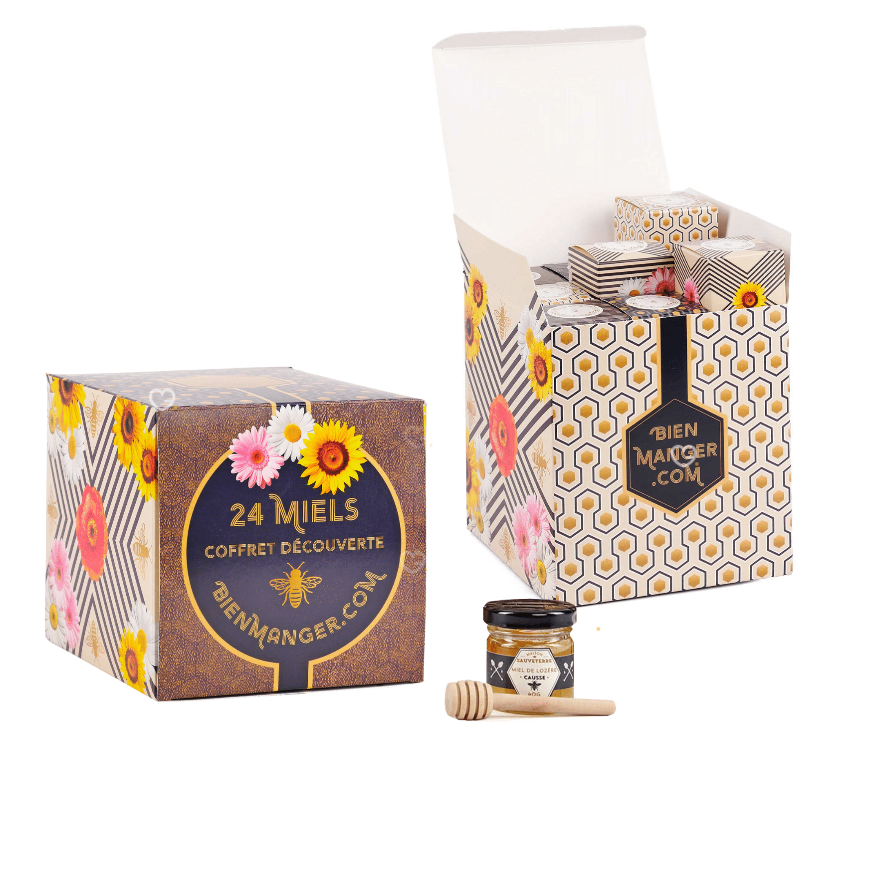 • Contenu : 24 pots de miel en verre de 40g chacun + 1 cuillère en bois