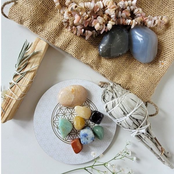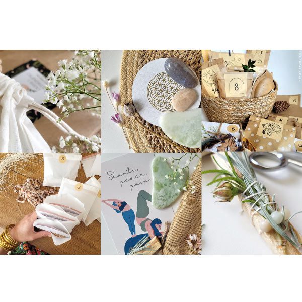 • Composition : 10 articles de lithothérapie, 1 kit DIY, 2 accessoires de purification, 2 produits cosmétiques, 2 accessoires de divination, 1 jeu de divination, 1 produit feng-shui, 2 articles de papeterie, 5 articles surprise