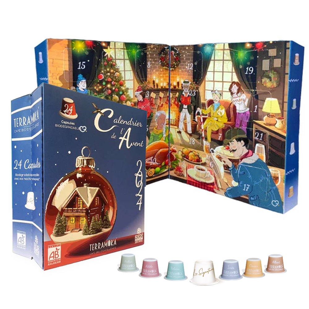 Découvrez le Calendrier de l'Avent Cafés Bio Terramoka 2025, une expérience unique qui transforme votre rituel matinal en voyage gustatif exceptionnel. Ce calendrier premium contient 24 capsules de café bio certifiées AB, compatibles Nespresso, déclinées en 8 profils aromatiques distincts torréfiés par le Champion de France triple étoilé Sébastien Maurer. Conçues pour les amateurs de café exigeants et éco-responsables, ces capsules 100% biodégradables se compostent à domicile en seulement 24 semaines, offrant une expérience zéro déchet sans compromis sur la qualité. Chaque jour révèle un nouveau café d'origine pure aux arômes savamment travaillés, créant 24 moments de découverte et de plaisir pour célébrer les fêtes de fin d'année avec raffinement et conscience environnementale.