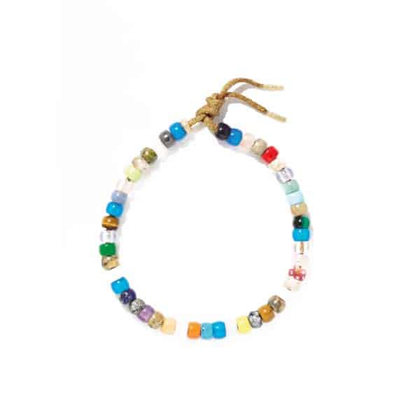 • Contenu : 1 cordon de bracelet Lurex, perles de pierres précieuses variées, plusieurs breloques en or 18 carats