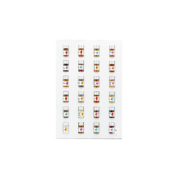 • Format : 24 flacons en verre individuels numérotés de 1 à 24