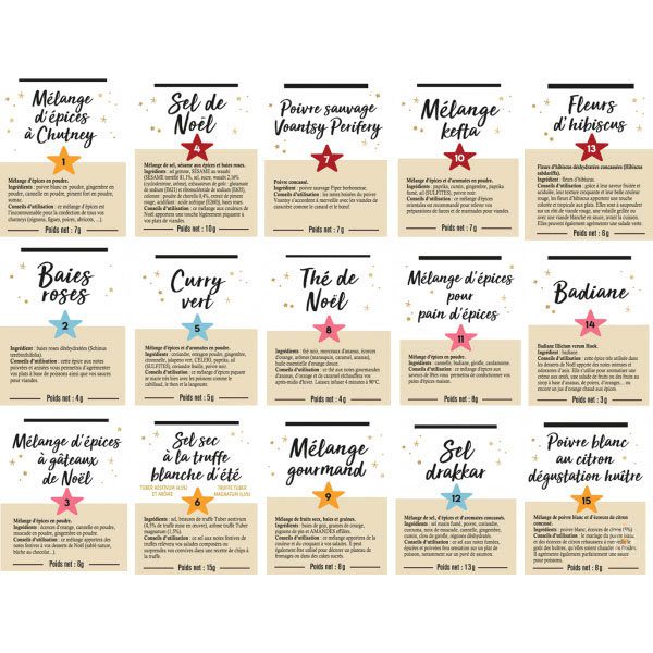 • 📖 Guide complet d'utilisation au dos avec suggestions d'usage pour chaque épice