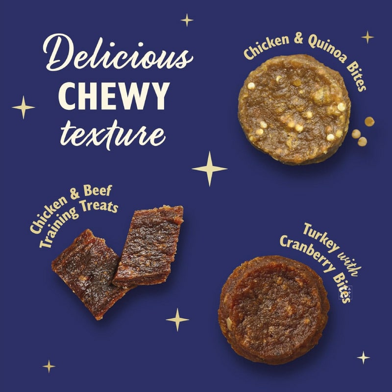 • Saveurs : Bouchées de dinde, bouchées de poulet, friandises d'éducation au poulet et bœuf