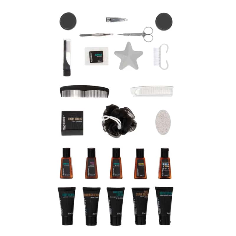 • Catégories de produits : Gommages corporels, gels douche, baumes après-rasage, accessoires de manucure, produits de soin
