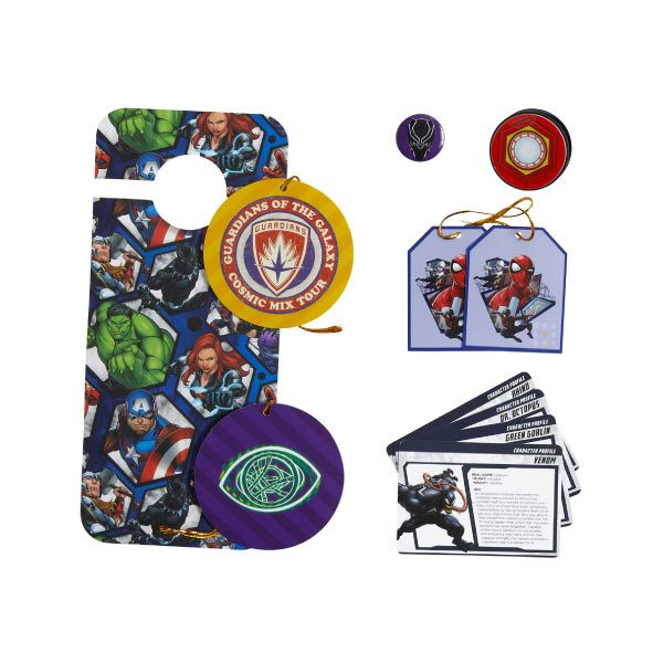 • Types d'articles inclus : Cartes de vœux exclusives, ornements en papier, pins/badges de collection, mini livrets, mémorabilia Marvel