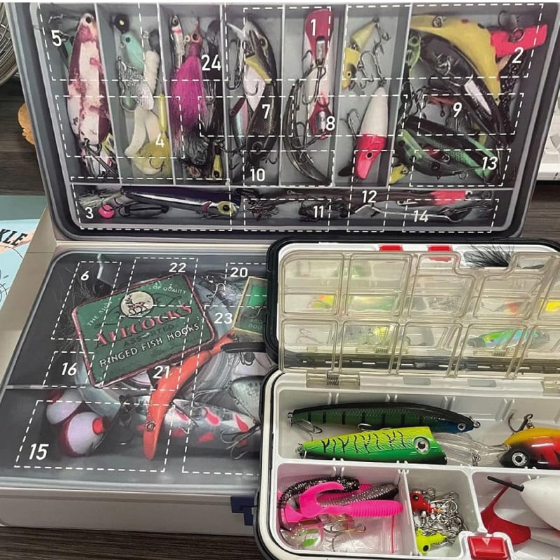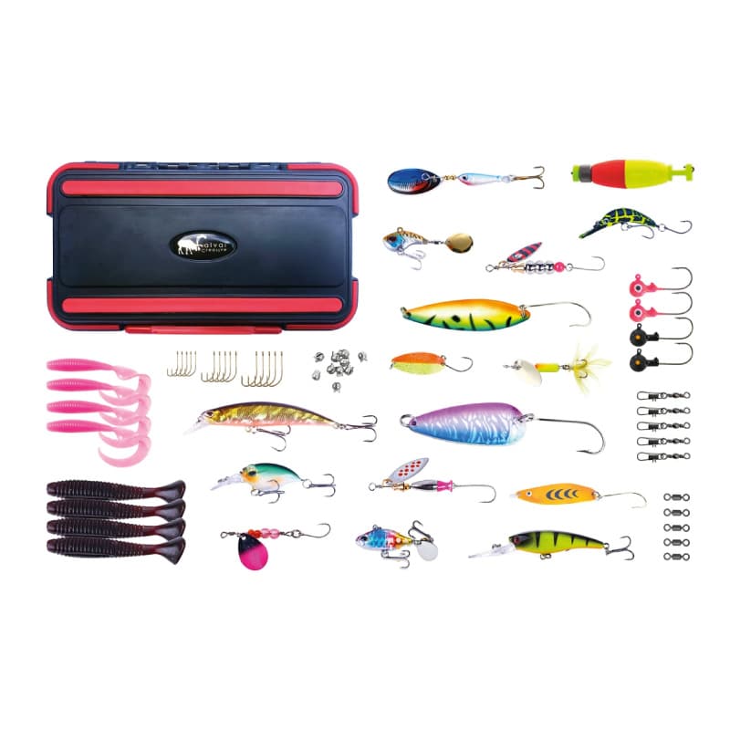 • Contenu : 24 articles de pêche premium (leurres, hameçons, spinners, accessoires de tackle)