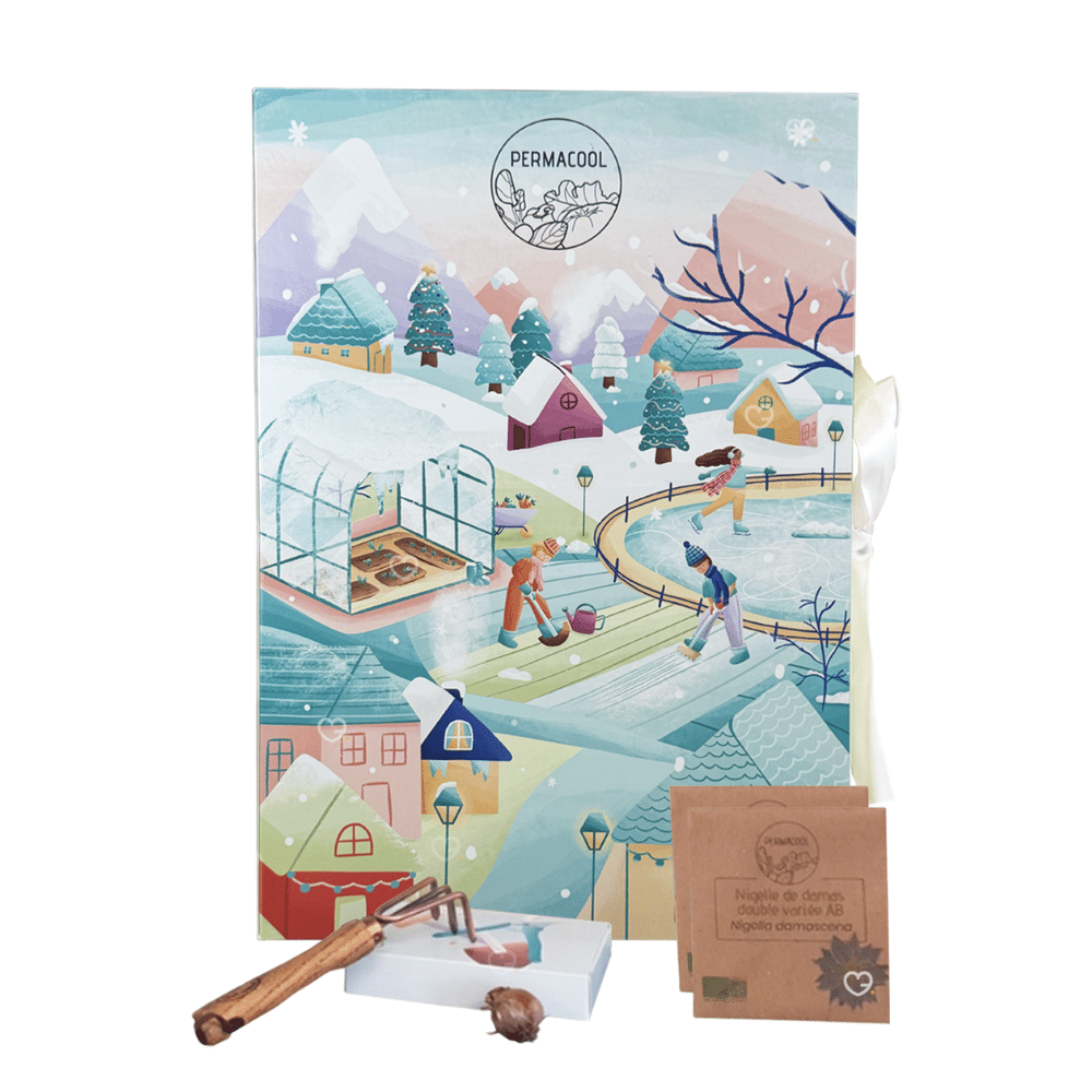Le Calendrier de l'Avent Permacool 2025 - Édition Jardinage transforme votre compte à rebours de Noël en une aventure végétale extraordinaire avec 24 surprises soigneusement sélectionnées pour les passionnés de jardinage durable. Fabriqué artisanalement à Lille par des travailleurs en situation de handicap, ce calendrier unique en son genre contient pour 175€ de produits premium : 11 variétés de graines biologiques certifiées Ecocert, 4 accessoires de jardinage indispensables, 3 fertilisants naturels, des plants aromatiques et un guide pratique complet. Chaque jour révèle un nouveau trésor accompagné de conseils d'experts accessibles par QR code, créant une expérience éducative parfaite pour débutants et jardiniers confirmés qui souhaitent cultiver leur passion tout en soutenant une démarche éthique et écologique.