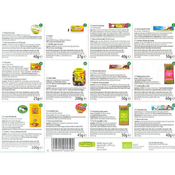 • Contenu : 24 spécialités gourmandes biologiques différentes