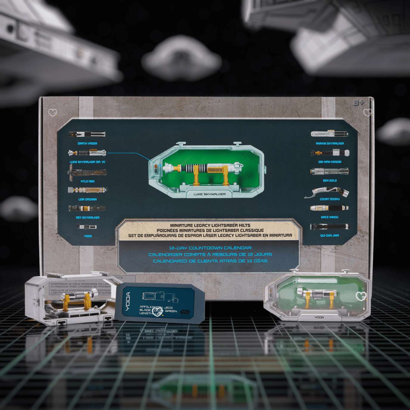 Plongez dans l'univers légendaire de Star Wars avec ce calendrier de l'Avent exclusif Disney Store 2025, révélant chaque jour l'une des 12 répliques miniatures authentiques des sabres laser les plus emblématiques de la saga. Chaque garde d'épée de 8 cm, fidèlement reproduite d'après les designs originaux des films, est accompagnée de son étui de protection transparent et de clips de fixation pour un affichage professionnel. Cette édition limitée transforme la tradition des fêtes en une expérience collector exceptionnelle, offrant aux fans de tous âges la possibilité de posséder les armes iconiques de Yoda, Mace Windu, Luke Skywalker et bien d'autres héros légendaires, dans un emballage premium de qualité Disney parfait pour l'exposition ou le jeu.